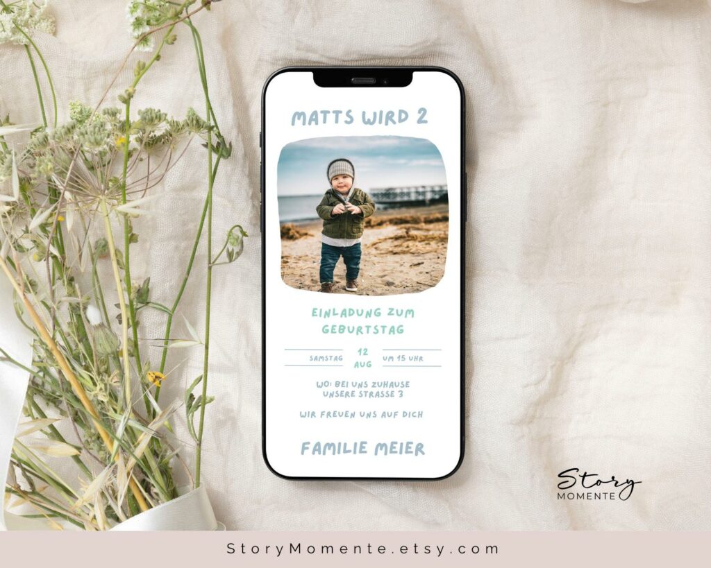 Digitale eCards für deinen Kindergeburtstag* (Werbung) findest du im Shop StoryMomente* (Werbung) auf Etsy. Die im Bild dargestellte eCard kannst du hier* (Werbung) kaufen.